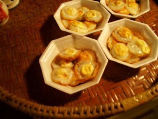 うずらの卵を浅いたこ焼き機で焼いたもの。醤油とコショーをかける。