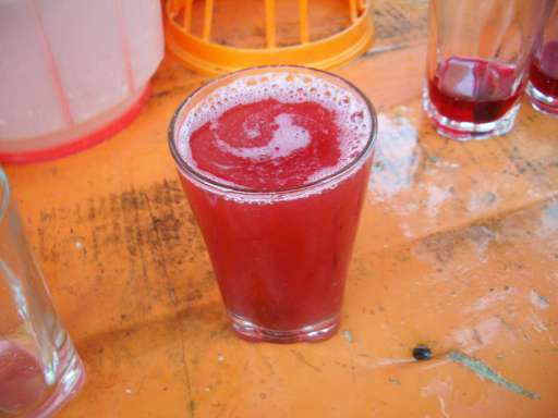 赤い飲み物。すももの汁みたい、と思ったらアルボカラはすももという意味らしい。サッカリンのような甘み。