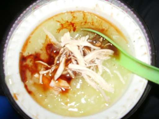 醤油と酢とコショウと唐辛子が効いている。なめらかで濃度の高いあんかけ風スープ。ささみ状の鶏肉が入っている。
