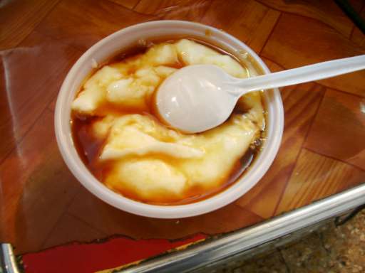 なめらかでとろみがあり不思議な弾力。なつめやし(デーツ)のシロップを黒蜜のようにかけて食べる。明らかに乳製品だけど餅のような風味がある。