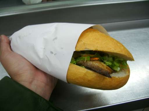 ほこっとほぐれるあったかい身。香ばしい香りとさわやかなレモンの風味がパンになじむ。サバの持つ旨みも力強い。きりっとした塩気と焼き魚のコクのコンビネーションはすごい。