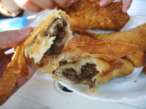 玉ねぎ、黒い小さな豆、青唐辛子入り。皮はパキパキと厚め。もくもくとした食べごたえの豆。塩味でやわらかい辛さが全体に行き渡っている。