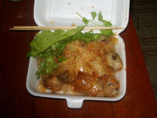 骨ごと豚肉が入ったおかゆ。豚肉は細かくほぐされている。パクチーとニンニク油の香りがかぶさる。唐辛...続きを読むRead More