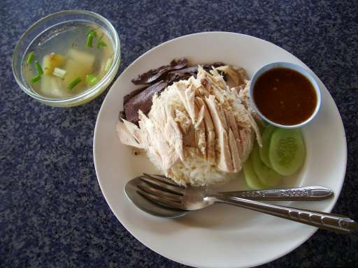 あっさりさっぱり。鶏肉はパサリン。添え物は、きゅうりと血のプリン。台湾では鴨血と表記していたかも知れないこの血のプリンは、調べてみたところเลือดหมู ルアッ・ムーと呼ぶらしい。ムニムニしていてスコンと歯が通る。ぷるるとしている。味はあまり無い。
