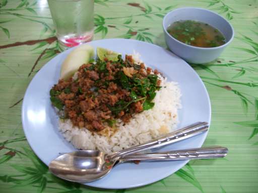 豚ひき肉とバジルの炒め。醤油味にしっかり炒められている。