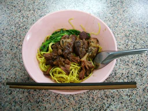 乗っている豚足はうまい。よく煮えている。あと青菜が乗っている。