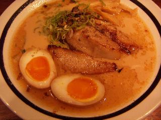 たまごは特筆すべきまろやかさ。黄身が舌の上にてろーんと拡がり、続く麺の流れに押し流される。 食べ進むうちに、豚とろの油と焦がしネギ・コショーが だんだんとスープに混じって味が強くなっていく。 底のスープを飲む時には、こってりスパイシーな味に変容を遂げていた。 |